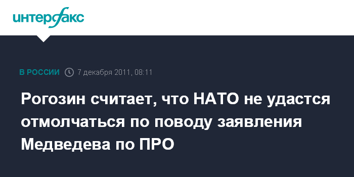 Рогозин считает, что НАТО не удастся отмолчаться по поводу заявления Медведева по ПРО