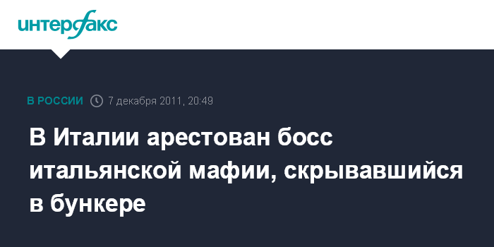 В Италии арестован босс итальянской мафии, скрывавшийся в бункере