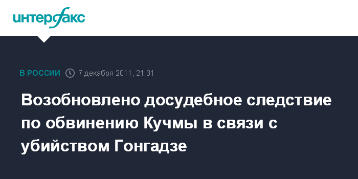 Киев. 7 декабря. INTERFAX.RU - На заседание Печерского районного суда Киева, который рассматривает жалобу адвокатов второго президента Украины Леонида Кучмы на постановлении о возбуждении в отношении него уголовного дела, судья Галина Супрун заявила, что возобновлено досудебное следствие по обвинению Кучмы в причастности к убийству журналиста Георгия Гонгадзе.