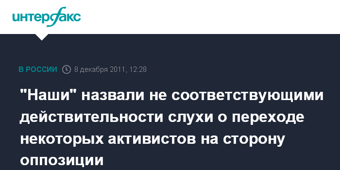"Наши" назвали не соответствующими действительности слухи о переходе некоторых активистов на сторону оппозиции
