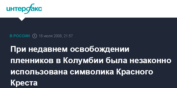 При недавнем освобождении пленников в Колумбии была незаконно использована символика Красного Креста
