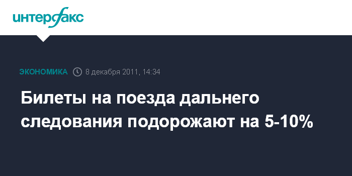 Билеты на поезда дальнего следования подорожают на 5-10%