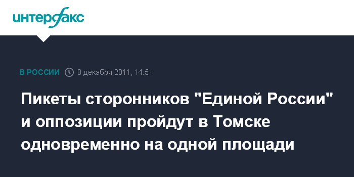 Пикеты сторонников "Единой России" и оппозиции пройдут в Томске одновременно на одной площади