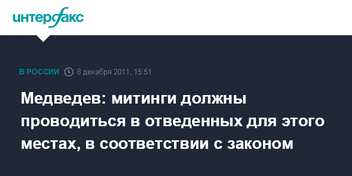 Медведев: митинги должны проводиться в отведенных для этого местах, в соответствии с законом