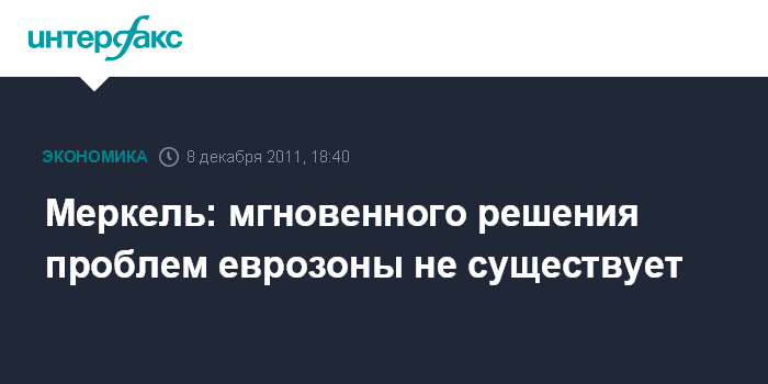 Марсель. 8 декабря. INTERFAX.RU - Проблемы еврозоны нельзя мгновенно решить какой-то одной мерой, сколь бы серьезной и масштабной она не была, заявила в четверг канцлер ФРГ Ангела Меркель.