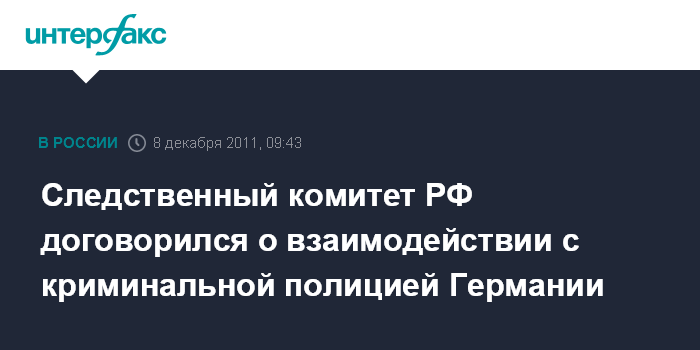 Москва. 8 декабря. INTERFAX.RU - Следственный комитет России и федеральное ведомство криминальной полиции ФРГ подписали заявление о сотрудничестве.