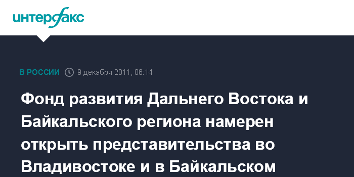 Фонд развития Дальнего Востока и Байкальского региона намерен открыть представительства во Владивостоке и в Байкальском регионе