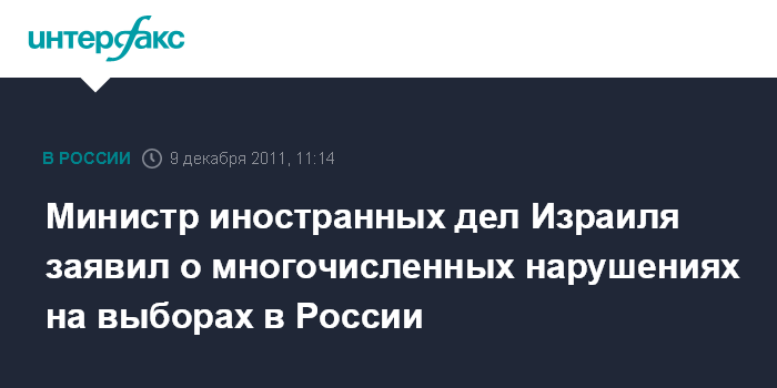 Москва. 9 декабря. INTERFAX.RU - Министр иностранных дел Израиля Авигдор Либерман отмечает факты нарушений в ходе парламентских выборов в России, связывая это с молодостью российской демократии.