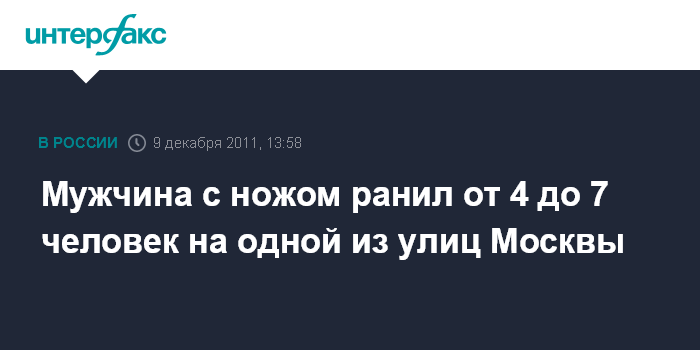 Москва. 9 декабря. INTERFAX.RU - Мужчина ранил ножом нескольких человек на севере столицы, сообщил "Интерфаксу" источник в правоохранительных органах.