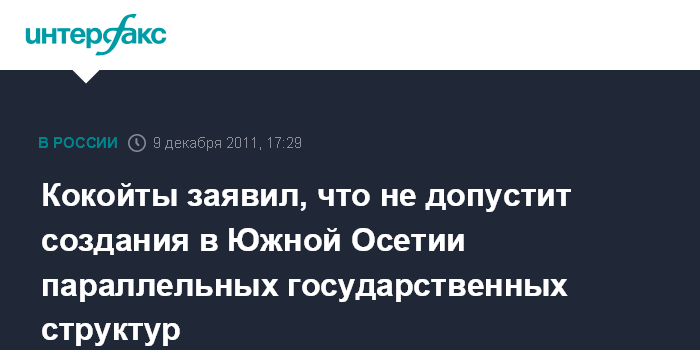 Кокойты заявил, что не допустит создания в Южной Осетии параллельных государственных структур