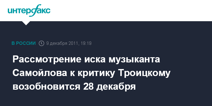 Рассмотрение иска музыканта Самойлова к критику Троицкому возобновится 28 декабря