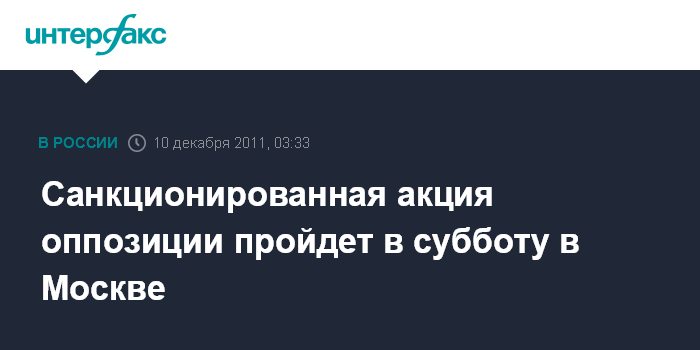 Москва. 10 декабря. ИНТЕРФАКС - Многотысячная акция оппозиции, санкционированная властями, пройдет в центре Москвы в субботу.