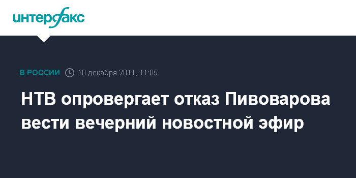 НТВ опровергает отказ Пивоварова вести вечерний новостной эфир