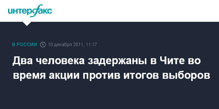 Чита. 10 декабря. INTERFAXRU - В Чите полицейские задержали двух человек во время акции против общих итогов выборов, которая прошла на площади Ленина. Сначала задержали одного человека, который раздавал листовки, затем - второго, который взял листовку у задержанного, передает корреспондент агентства "Интерфакс-Сибирь".
