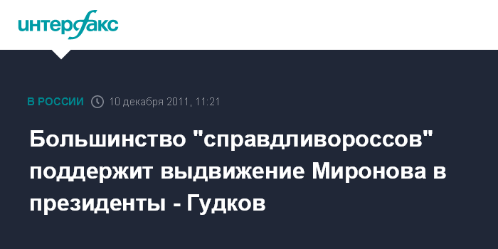 Большинство "справдливороссов" поддержит выдвижение Миронова в президенты - Гудков
