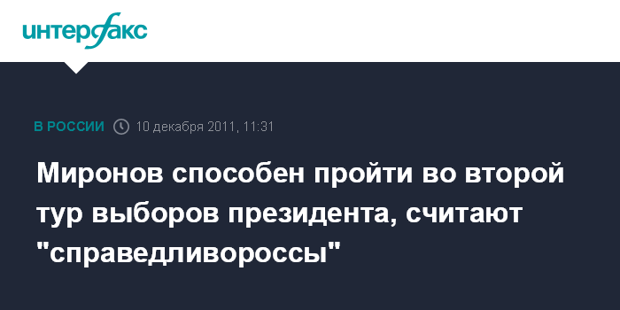 Миронов способен пройти во второй тур выборов президента, считают "справедливороссы"