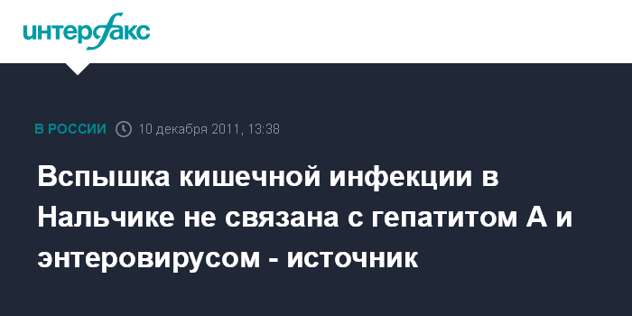 Нальчик. 10 декабря. INTERFAX.RU - Причина вспышки кишечной инфекции в Нальчике все еще не установлена, сообщил корреспонденту агентства "Интерфакс-Юг" в субботу источник в экстренных службах города.