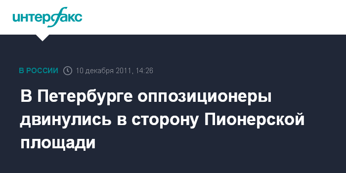 Санкт-Петербург. 10 декабря. INTERFAX.RU - Значительная группа оппозиционеров в субботу днем отправилась от площади Восстания к Пионерской площади Петербурга, передает корреспондент "Интерфакса". Несколько десятков человек двинулись вдоль Невского проспекта, они скандируют политические лозунги.