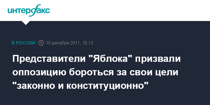 В свою очередь основатель "Яблока" Григорий Явлинский пообещал, что его партия будет бороться законными методами за отставку премьер-министра Владимира Путина. "Они объявили, что кампания (избирательная) завершена. Нет, кампания только начинается. Мы объявляем кампанию за законное отстранение группировки Путина от власти", - сказал Г.Явлинский в субботу, выступая на митинге на Болотной площади.