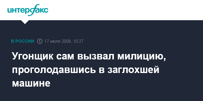 Угонщик сам вызвал милицию, проголодавшись в заглохшей машине
