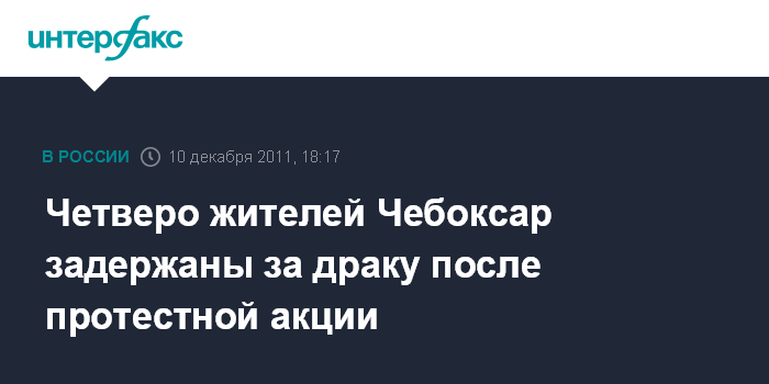 Чебоксары. 10 декабря. INTERFAX.RU - Сотрудники чебоксарской полиции по окончании акции протеста против результатов выборов в Госдуму в субботу задержали четверых человек, сообщил агентству "Интерфакс-Поволжье" представитель пресс-службы МВД по Чувашии Олег Ашнин.