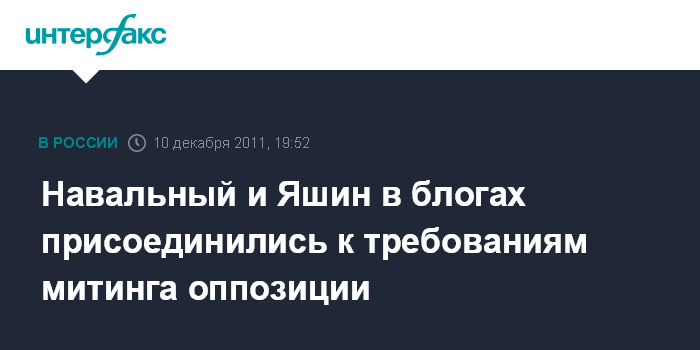 Навальный и Яшин в блогах присоединились к требованиям митинга оппозиции