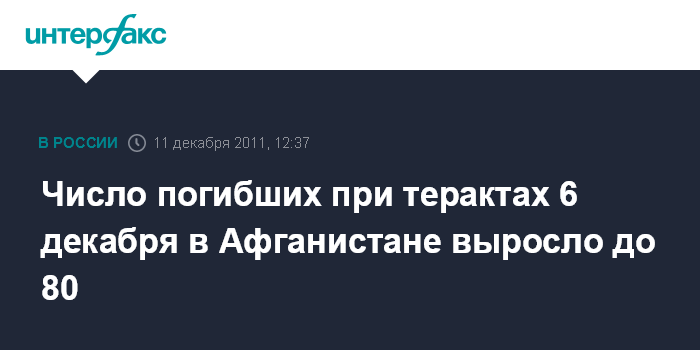 Число погибших при терактах 6 декабря в Афганистане выросло до 80