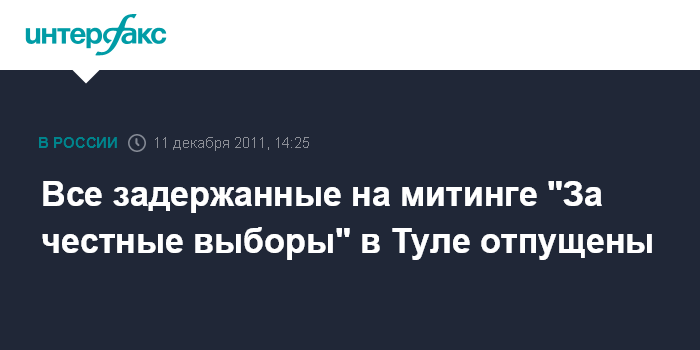 Тула. 11 декабря. INTERFAX.RU - Судья мирового участка в Туле перенесла рассмотрение дел об административных правонарушениях в отношении задержанных в субботу на центральной площади участников несанкционированного митинга "За честные выборы", сообщил "Интерфаксу" в воскресенье источник в судебных органах региона. Ранее в областном УМВД сообщали о 12 задержанных во время митинга.