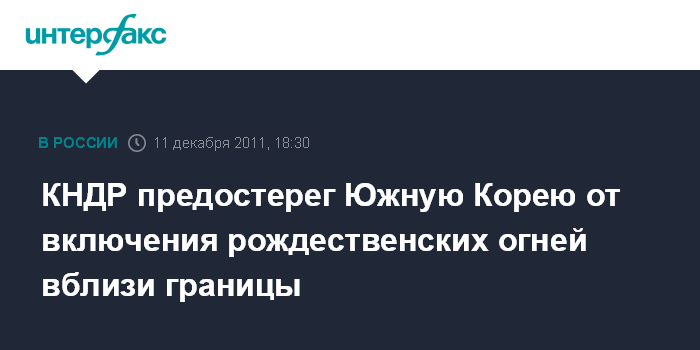Лондон. 11 декабря. INTERFAX.RU - КНДР пригрозил Южной Корее "непредсказуемыми последствиями" в случае, если Сеул решит зажечь рождественские огни на границе между странами, сообщает в воскресенье британская телерадиокорпорация Би-би-си.