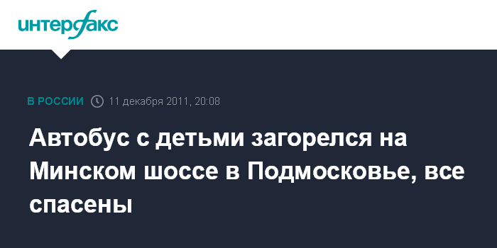 "Сегодня около 19:15 на 22-м км Минском шоссе во время движения загорелся автобус "Неоплан". В салоне автомобиля находились дети и их родители, которые возвращались из цирка в город Краснознаменск. В результате автобус сгорел полностью", - сообщил собеседник агентства.