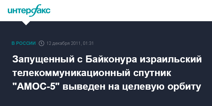 "В ближайшее время космический аппарат "АМОС-5" будет передан на