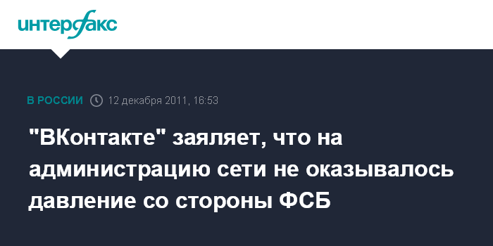 "ВКонтакте" заяляет, что на администрацию сети не оказывалось давление со стороны ФСБ