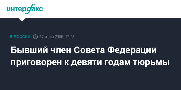 Бывший член Совета Федерации приговорен к девяти годам тюрьмы