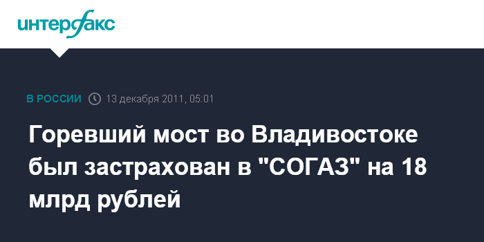 Горевший мост во Владивостоке был застрахован в "СОГАЗ" на 18 млрд рублей