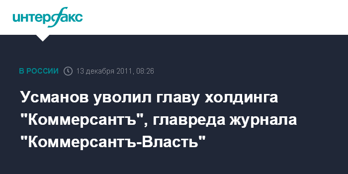 Усманов уволил главу холдинга "Коммерсантъ", главреда журнала "Коммерсантъ-Власть"