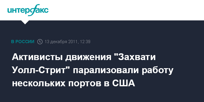 Москва. 13 декабря. INTERFAX.RU - Работу нескольких портов на Западном побережье США парализовали несколько тысяч активистов движения "Захвати Уолл-Стрит", сообщает во вторник британская телерадиокорпорация ВВС.