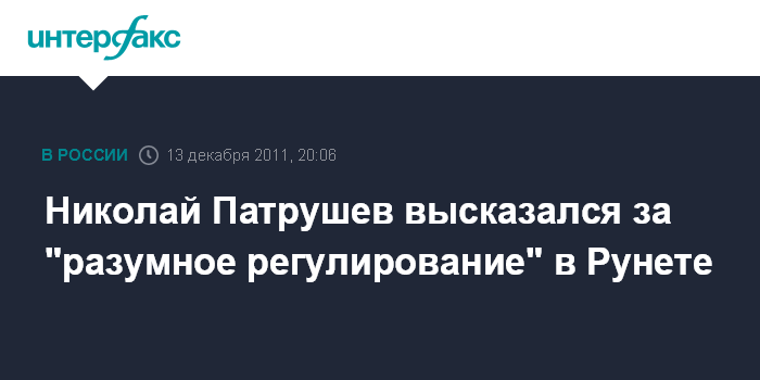 Москва. 13 декабря. ИНТЕРФАКС - Секретарь Совбеза РФ Николай Патрушев считает, что разумное регулирование Интернета в России возможно.