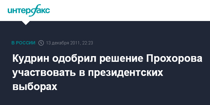 Кудрин одобрил решение Прохорова участвовать в президентских выборах