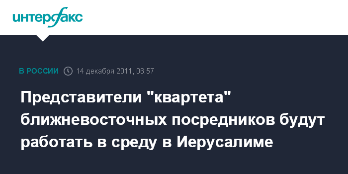 Представители "квартета" ближневосточных посредников будут работать в среду в Иерусалиме