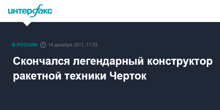 Королев (Московская область).14 декабря. INTERFAX.RU - В Москве на сотом году жизни скончался выдающийся конструктор ракетной техники, соратник Сергея Королева академик РАН Борис Черток, сообщили "Интерфаксу-АВН" в среду в корпорации "Энергия" (Королев).