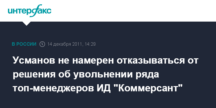 Усманов не намерен отказываться от решения об увольнении ряда топ-менеджеров ИД "Коммерсант"