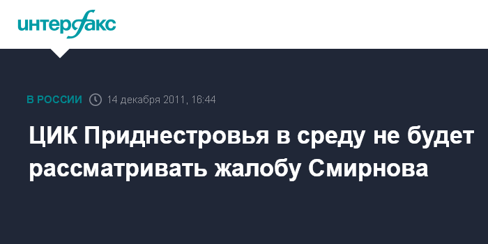 ЦИК Приднестровья в среду не будет рассматривать жалобу Смирнова