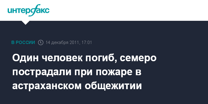 Астрахань. 14 декабря. INTERFAX.RU - Число пострадавших во время пожара в общежитии в Астраханской области, по уточненным данным, составляет семь человек, из них двое детей, сообщила агентству "Интерфакс-Юг" представитель Минздрава региона Алина Гончарова.