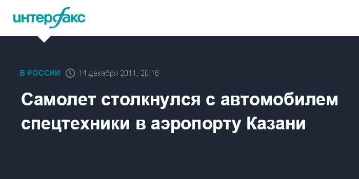 Казань. 14 декабря. INTERFAX.RU - На несколько часов был задержан рейс Казань - Санкт-Петербург авиакомпании "Татарстан" из-за столкновения самолета Як-42 со спецтехникой на летном поле международного аэропорта "Казань" в среду, сообщила местная телекомпания.