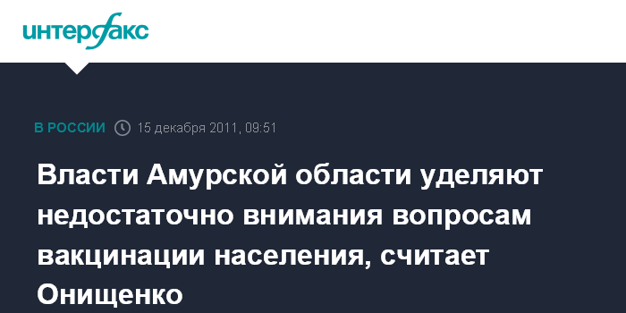 Москва. 15 декабря. INTERFAX.RU - Руководитель Роспотребнадзора, главный государственный санитарный врач РФ Геннадий Онищенко недоволен тем, как власти и медики Амурской области организовали вакцинацию населения.