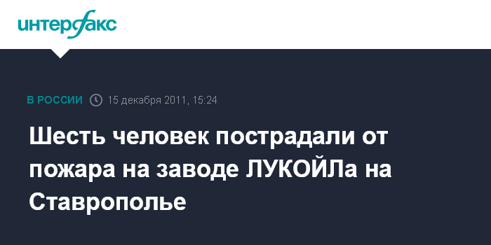 Шесть человек пострадали от пожара на заводе ЛУКОЙЛа на Ставрополье
