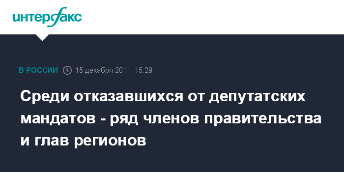 Среди отказавшихся от депутатских мандатов - ряд членов правительства и глав регионов