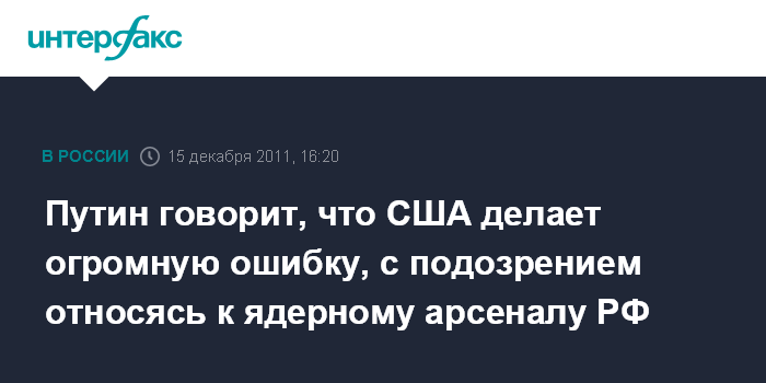 Путин говорит, что США делает огромную ошибку, с подозрением относясь к ядерному арсеналу РФ
