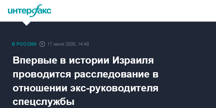 Москва. 17 июля. INTERFAX.RU - Служба общей безопасности Израиля (ШАБАК) приступила к расследованию в отношении бывшего руководителя этой спецслужбы Эли Зеиры, который подозревается в разглашении информации, составлявшей государственные секреты Израиля.