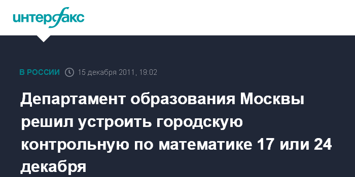 Департамент образования Москвы решил устроить городскую контрольную по математике 17 или 24 декабря